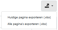 Huidige pagina exporteren (.xlsx), Alle pagina's exporteren(.xlsx)