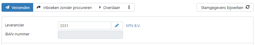In het controlescherm zie je nu naast Verzenden een extra optie: Inboeken zonder procureren.